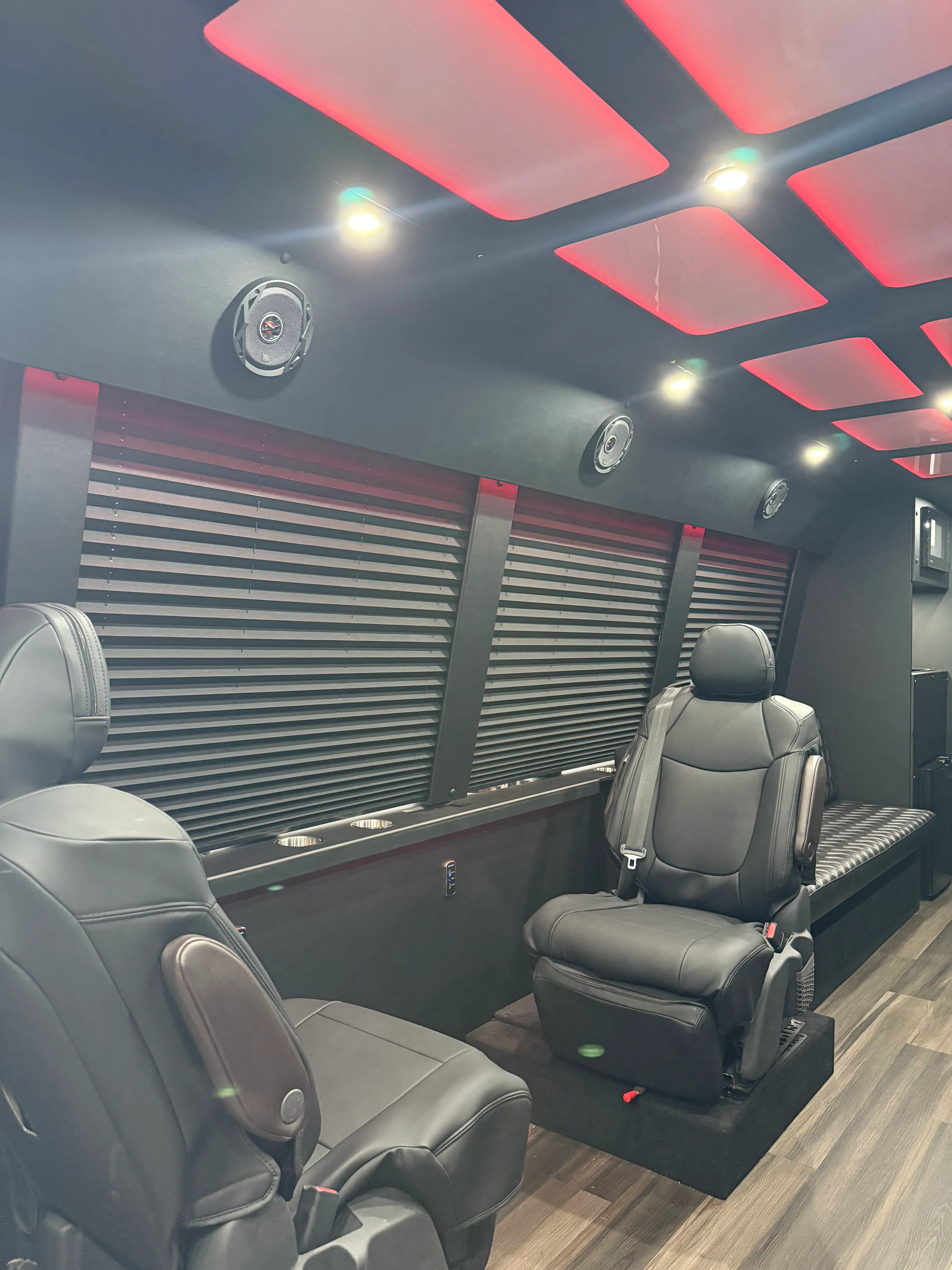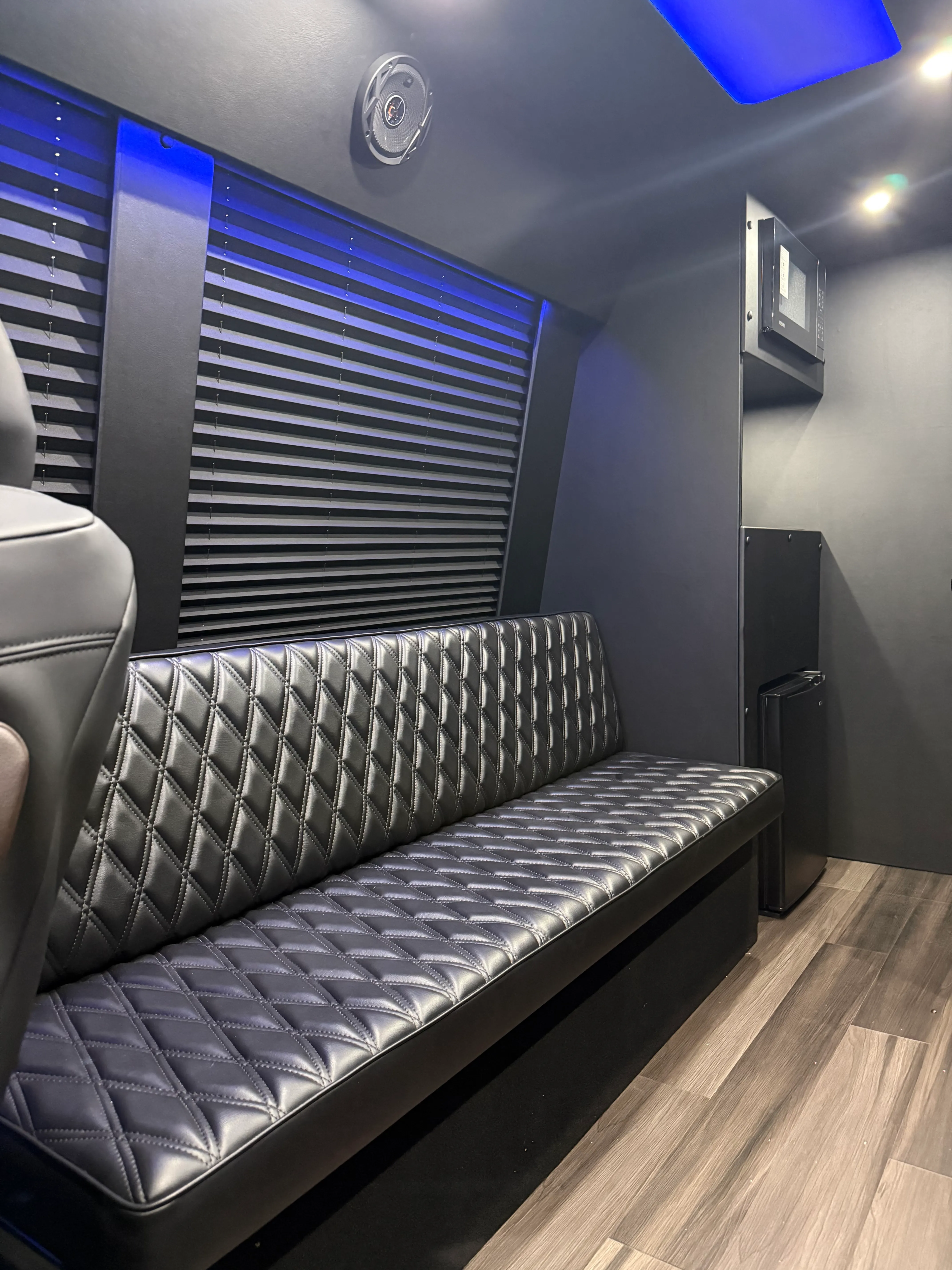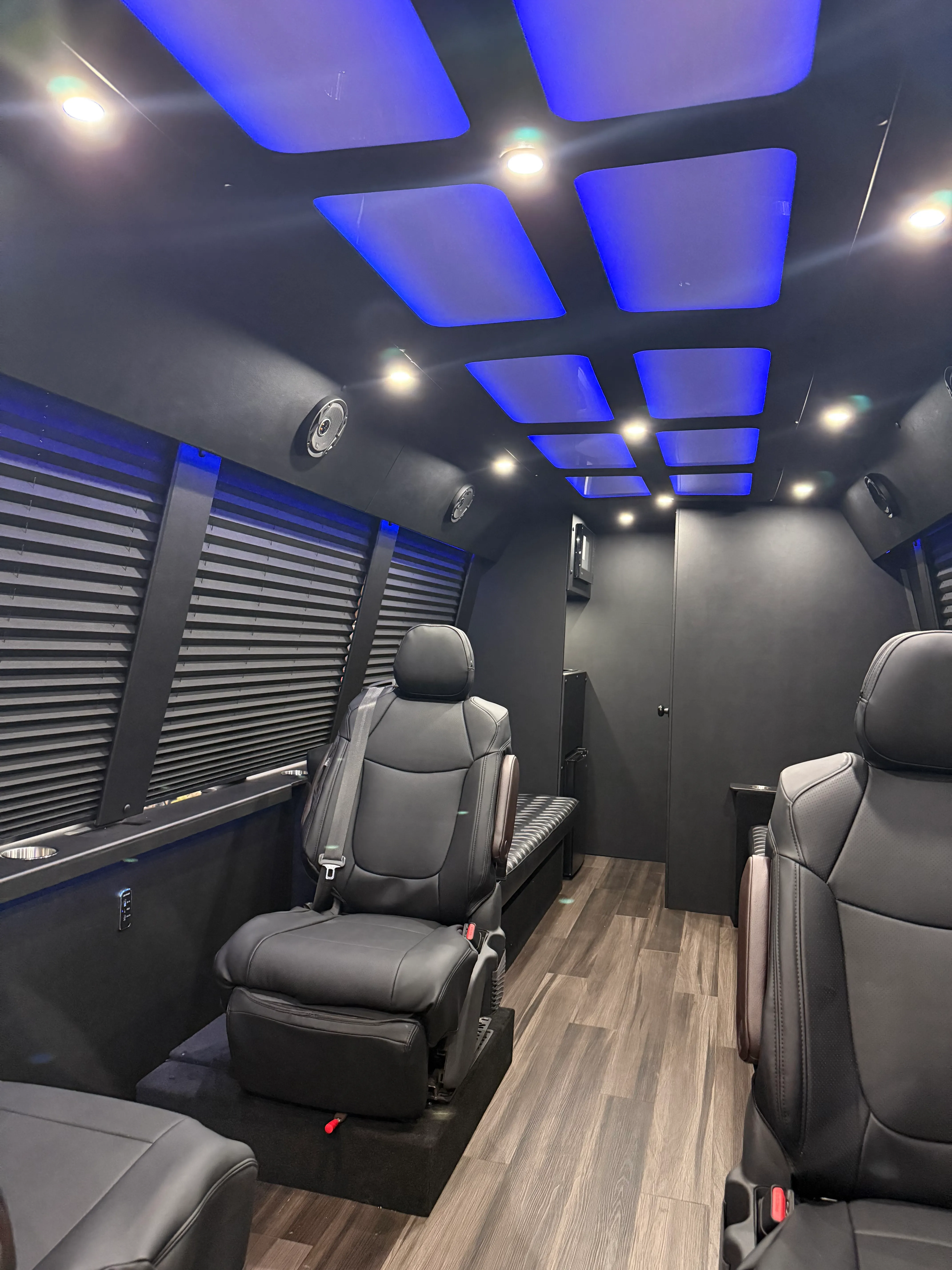 Whether you're headed to a special event, corporate retreat, or a night out with friends, this Sprinter Bus turns every journey into a celebration.